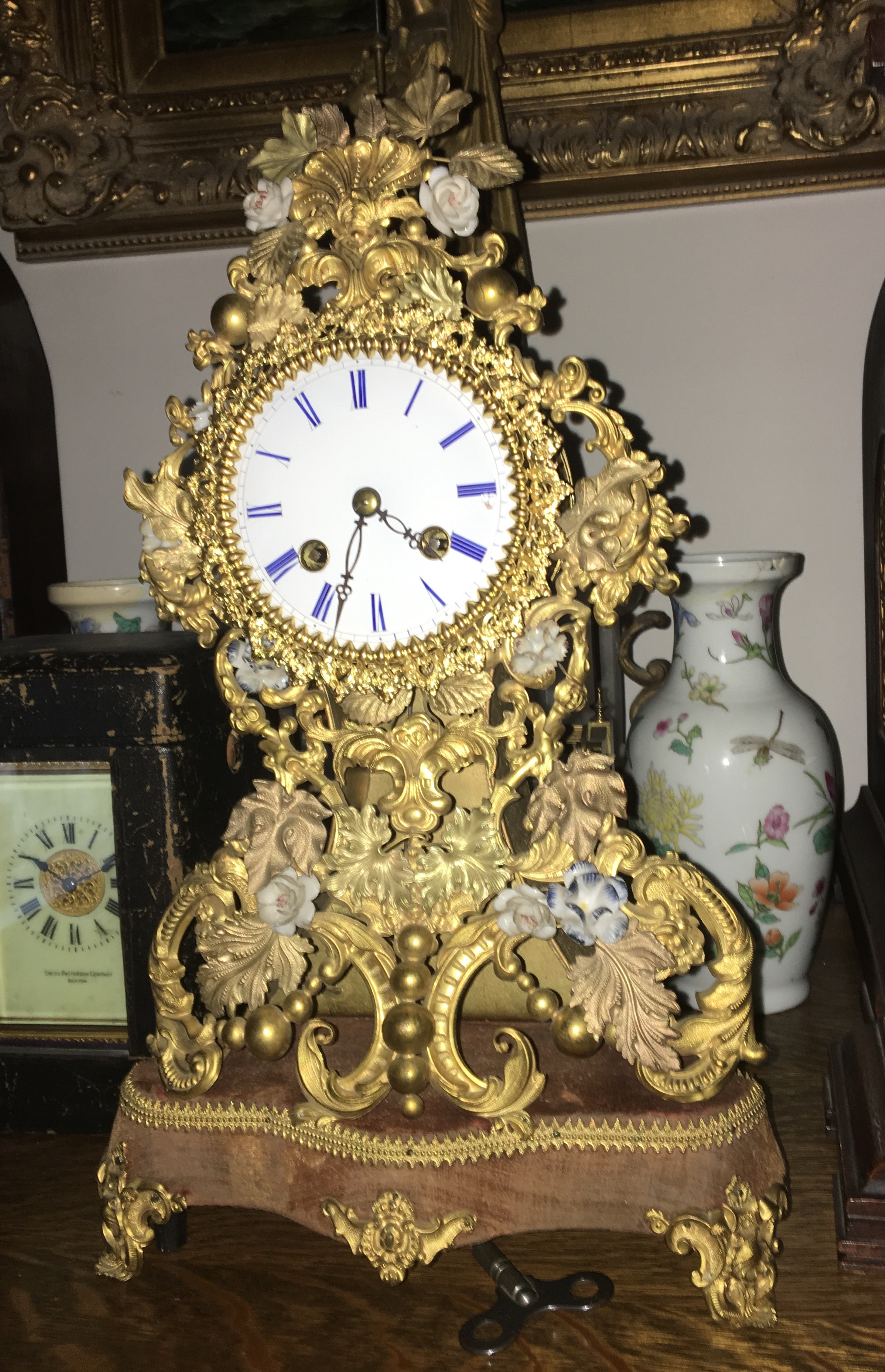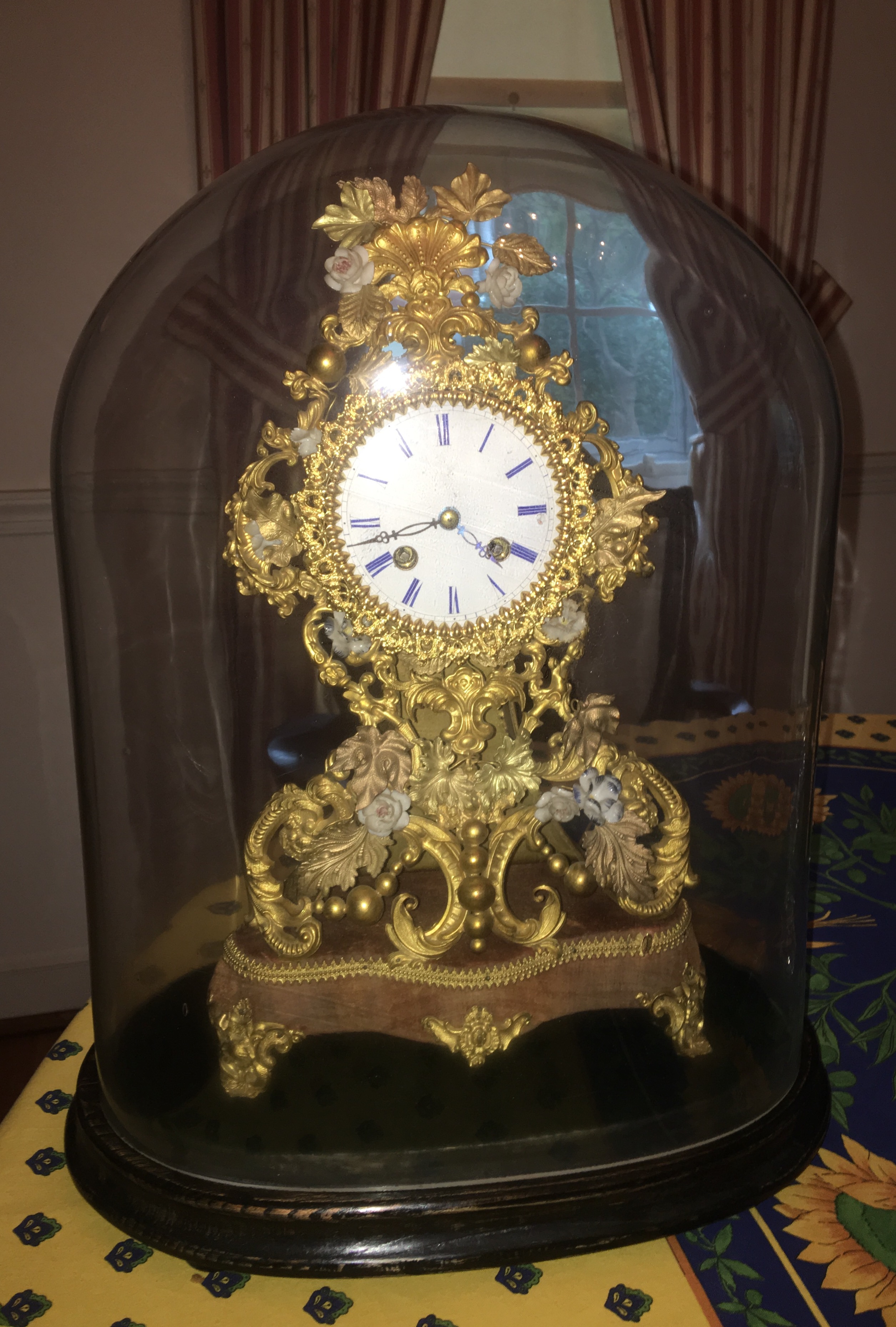 This lovely unsigned, Paris-made piece features an eight-day-running,